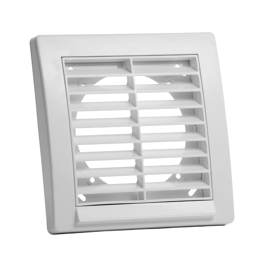 External fixed grille, made of high quality ABS, shock-proof and UV resistant, RAL9010. Recommended for installation in combination with fans equipped with shutters.