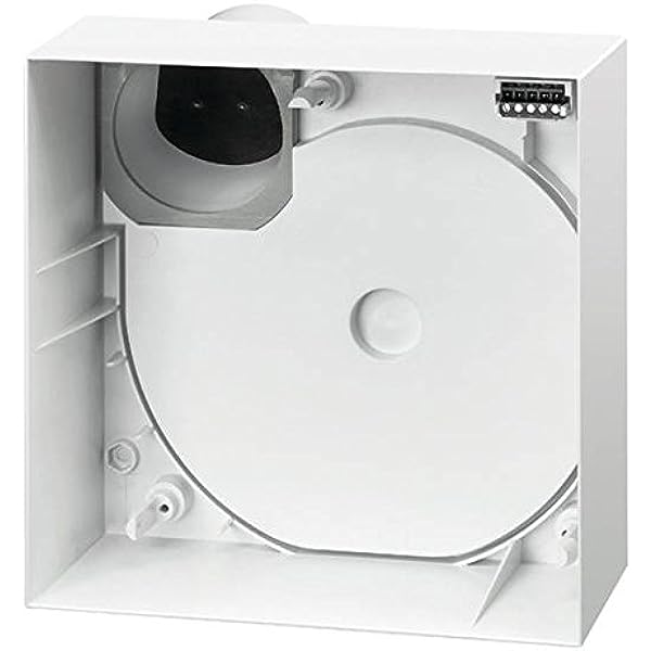 Surface mounted casing. Air discharge at the rear for lateral discharge use ELS-GU Airtight backdraught shutter installed to rear discharge spigot.
