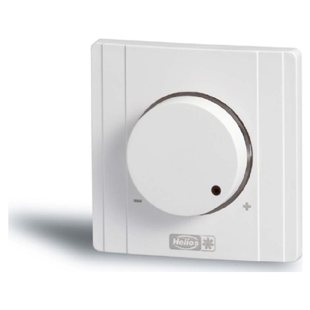 Flush mounted speed controller. Front and rotary knob made of white plastic. Installation in standard flush-mounted box. Operation indicator via light ring.