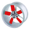 High efficiency axial fan with cylindrical duct with flanges on both ends, directly driven.