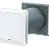 Built-in device with heat recovery for ventilation of individual rooms. Aluminium plate heat exchanger with an efficiency of over 70%. State-of-the-art EC motors with the highest efficiency for extremely low energy consumption. Device unit with 4 power levels as well as exhaust and supply air operation and interior facade made of high-quality plastic. Fan housing (material: EPP) with 2 highly efficient, energy-saving direct current EC fans, two electric stainless steel external shutters with fly screens, close airtight to the outside during downtimes. In the event of a power failure, such as a power failure, the flaps open automatically. Large-area aluminium plate heat exchanger with an efficiency of over 70%. Two efficient air filters made of class G4 electrostatic material in the supply and exhaust air flow guarantee the best air purity. An F7 pollen filter (accessories: item no. 9446) can be used as an option on the supply air side. The condensate is discharged directly to the outside via the outer cover including the drip tray. Output control using the supplied control element KWL BCU including weekly timer and extensive functions. With additional integrated humidity sensor for demand-dependent ventilation. The humidity values can be adjusted.