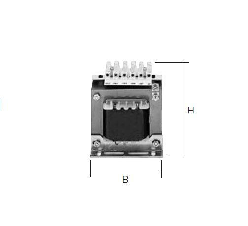 Built-in transformer without housing with base ring and terminal strip for 5 different voltages (0/80/130/170/230), for fuse board installation.